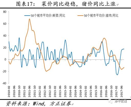 本周农业部猪肉平均批发价环比0.0%,9月同比-17.8%,高于8月的-19.6%。36个城市猪肉平均零售价环比下跌0.1%,9月同比-9.2%,高于8月的-9.9%。发改委发布《上半年生猪价格情况及后期走势分析》,警示下半年猪肉供应可能会进一步增加,猪价整体仍会呈下降趋势。36个城市牛肉和羊肉平均零售价9月同比分别为0.3%和-2.0%,均高于8月的-0.2%和-2.4%。36个城市水产和鲜花平均零售价9月同比分别为6.04%和-2.06%,分别高于和低于8月的5.78%和7.99%。