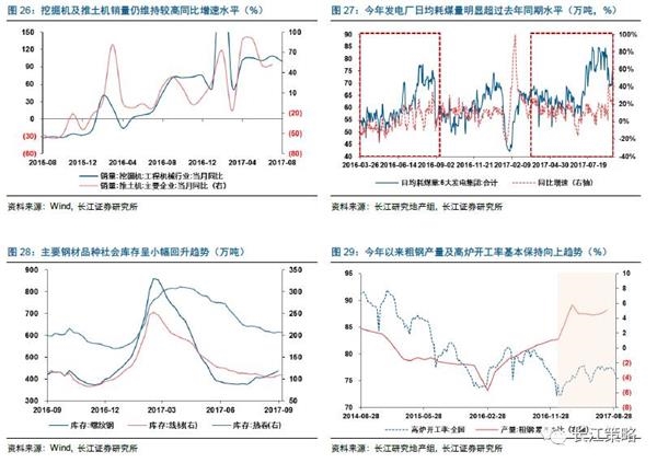 首先,工程机械行业方面,虽受天气扰动因素影响工程项目开工,但可作为经济景气先导指标的挖掘机、推土机及重卡等销量数据仍维持较高同比增速水平。其中,今年8月挖机销量数据达8714台,较7月环比增加1058台,较去年8月同比增速仍较高达到99.5%,维持年初以来的较高水平。