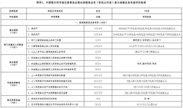 附件:1.中国银行间市场交易商协会意向承销类会员(信托公司类)参与承销业务市场评价标准