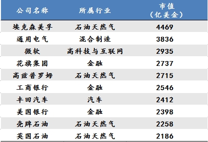 十年前企业全球市值TOP10