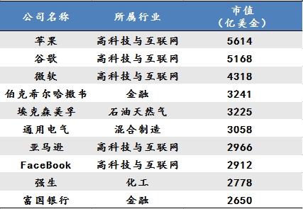 当前企业全球市值TOP10