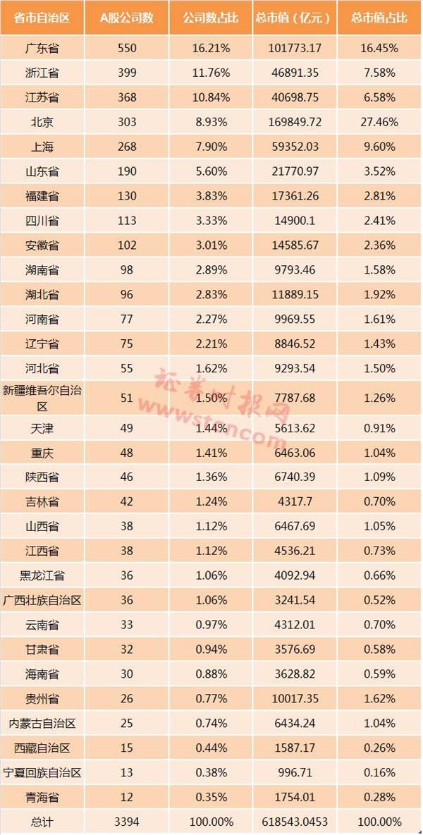 5省市A股数量占半壁江山