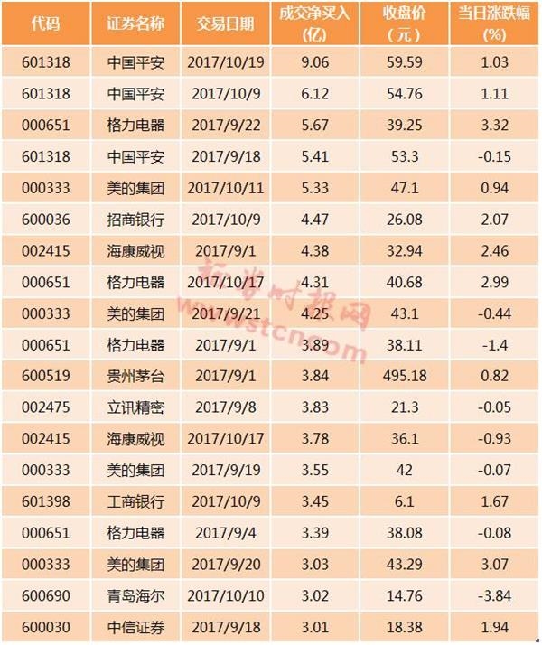 据不完全统计,9月份以来,中国平安、格力电器、美的集团、招商银行、海康威视等,多次获得北向资金亿元以上的单日净买入。
