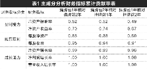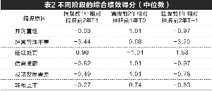 一般来说,如果指标累计贡献率(累计得分占总得分的比例)在0.95以上,则视为指标有效。计算发现,总资产报酬率、净资产收益率、每股净资产、每股收益及净资产增长率五个指标的累计贡献率超过0.95(见表1),说明盈利能力,股东获利指标对企业的综合发展相对重要,表2为不同阶段不同原因的摘牌企业的综合绩效得分(简称盈利因子)中位数。