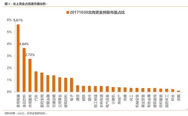 从北上资金的统计来看,外资最偏好的还是白马龙头的居多的板块,比如家电、食品、休闲服务、汽车、医药等。