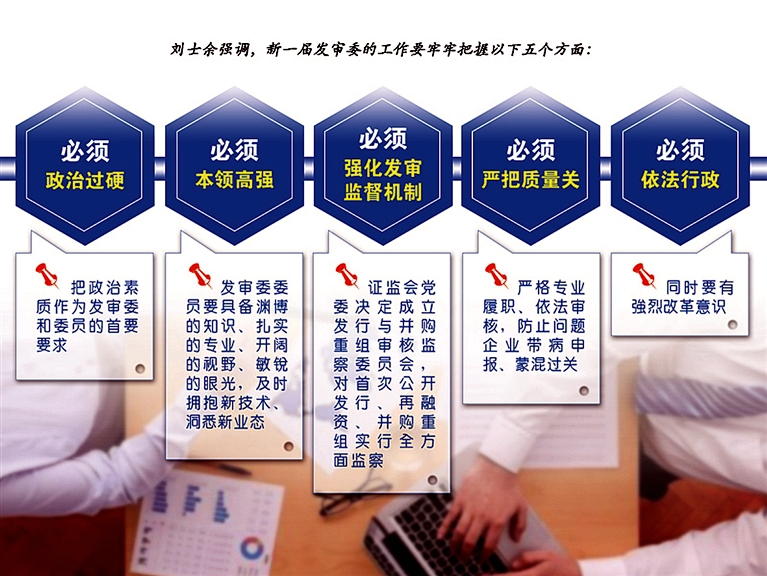 刘士余强调,新一届发审委的工作使命神圣、万众瞩目、充满挑战,要牢牢把握以下五个方面。
