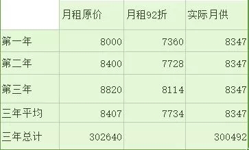 经计算得出,按揭租房每月需还月供8347元,三年累计还款总额30万零492元;如果每月交租,三年总计要交30.264万元,按揭节省了2148元!