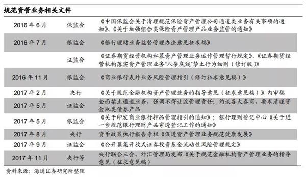 资管新规落地,关注细则与执行力度。11月大资管新规落地,主要目的在于统一产品标准、消除监管套利、规范业务发展,以防范系统性金融风险,其中净值转型加速、打破刚性兑付、消除多层嵌套、清理通道业务、规范资金池、杜绝期限错配等内容值得关注。与年初媒体披露的内审稿相比,此次征求意见稿关于打破刚兑、规范非标投资、规范资金池、分级产品要求、投资者适当性的规定趋严,而集中度限制、允许一层嵌套、允许设立子公司进行第三方监管等弱于此前预期。但本次出台的新规仅是指导意见,是各类资管产品需要满足的最低要求,后续的细则或更为严厉,仍需关注银行理财新规的落地情况以及这一系列新规的执行力度。