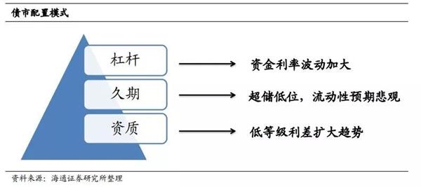 债市配置模式。债市获利三要素杠杆、久期和资质。央行货币政策持续偏紧,导致资金利率居高不下,使得债市加杠杆策获利空间有限;大水漫灌式放水难见,超储率历史低位,市场对流动性预期较悲观,久期大多较短;打破刚兑是大趋势,资质下沉面临风险渐增。整体而言2018年债市依然建议票息策略为主。