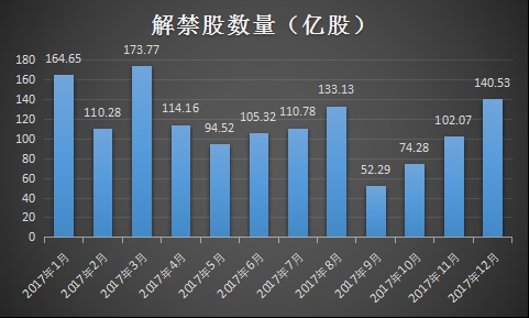 2017年月度解禁股数量分布: