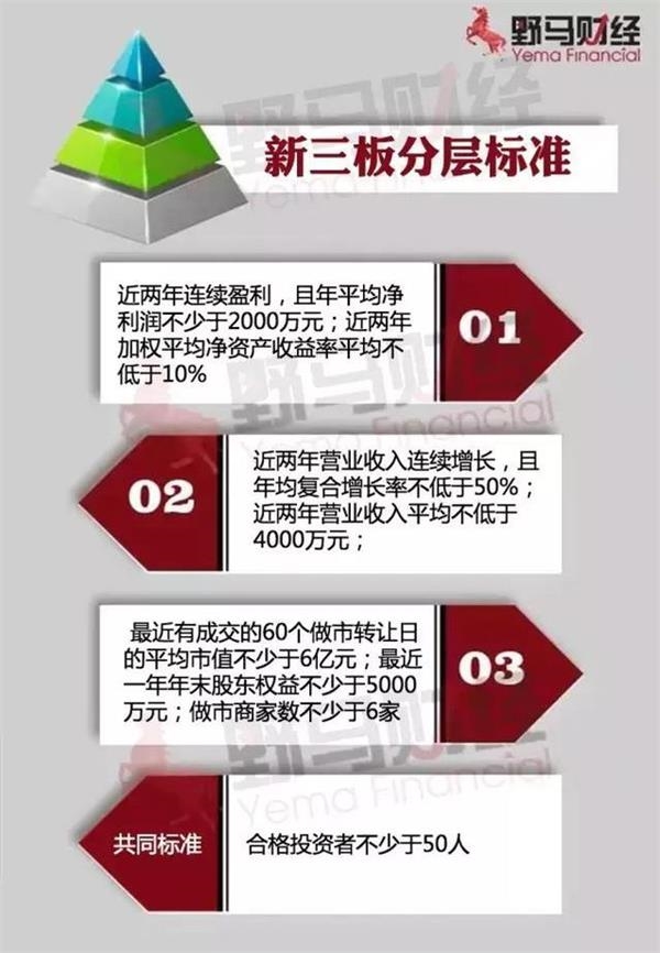中信建投新三板某从业人员告诉野马财经,这次的新三板调层除了要满足创新层的三个条件外,还要满足“合格投资者不少于50人、最近60个可转让日实际成交天数占比不低于50%”这一要求。粗略估计,现阶段的创新层企业近一半不能同时满足三项条件之一和这个要求。