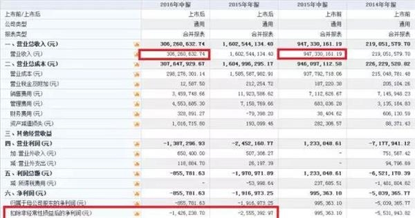 不过,光彩的背后亦已透出日后种种危机。虽然2015年全年营收超16亿,可仍亏损191万,彼时1%的毛利率让投资者也不敢轻易买单。挂牌后的趁热打铁融资,最终金额不到预期,且还出现了两次延期。