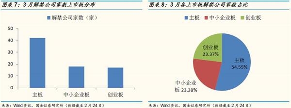 四、3月,A股以主板解禁为主,但需注意一般估值过高的个股减持的动力更足。