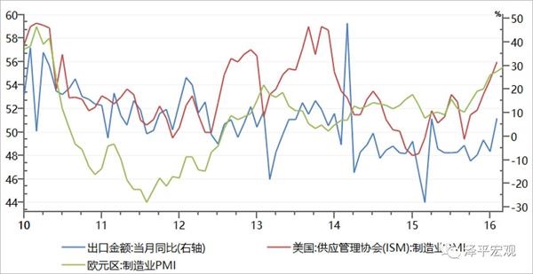 2,出口超预期。去年6月份以来世界经济在改善,欧美的PMI指数都在创新高,补库存和特朗普景气,中国去年6月份以来出口持续回升,1月出口增长7%以上,大幅超市场预期,我们剔除季节因素也是非常亮眼。除了外需的改善之外,2015年到2016年人民币贬值了14%。