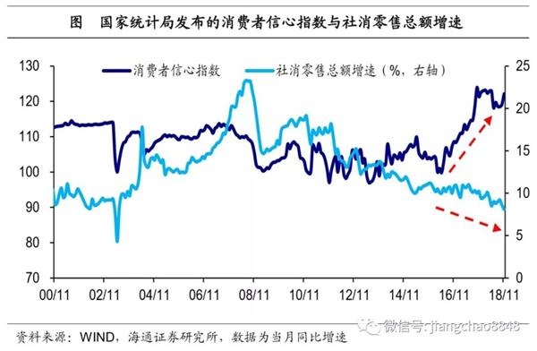既然居民收入近年来并无大幅变化,16年一季度至18年三季度城镇居民人均可支配收入累计同比增速均值尚不足8%,实际收入偏低的情况下,消费者对经济和收入的信心又是从何而来呢?
