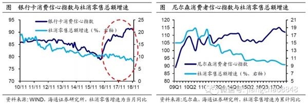 非官方机构指数并不具备优势。而非官方机构发布的消费者信心指数,其走势与国家统计局的消费者信心指数基本一致,在与消费支出的吻合度上并不具备优势。如尼尔森公司(Nielsen)按季度发布的消费者信心指数、以及中国银联基于银行卡消费数据构建的银行卡消费信心指数,均在16年后半年开始大幅上升,并在17-18年达到并维持历史高位。不同来源的消费者信心指数均呈现出同样的变化趋势,也说明消费者信心指数与消费增速走势的差异并不来自于调查样本。