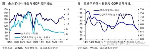 经济趋缓,为何信心高企?消费者信心指数与消费增速脱节。从国家统计局发布的消费者信心指数上来看,从16年下半年开始其与消费增速就出现明显脱节,并且与居民消费支出同样难以吻合,而非官方机构发布的数据呈现同一趋势,收入端也发现预期与现实的差距走扩。实际收入偏低的情况下,消费者对经济和收入的信心从何而来?归根结底,消费者信心的高企还是同房地产有关。我国房价增速大约领先消费者信心指数三至四个季度。15年三季度房价同比增速降幅开始收窄,此后更是一路升至高位,带动消费者信心指数触底回升。虽然居民整体收入改善程度不高,但是与房产相关的财产性收入大幅增长,这进一步强化了消费者信心,通过加杠杆来补充购房资金,甚至在地产政策收紧后不少采用了短期消费贷款形式。消费者信心并未作用于消费,却体现在了房市!企业家、银行家、经济学家对经济信心高涨。除消费者外,官方机构还分别就企业家、银行家和经济学家的调查编制了宏观经济信心指数,它们均反映出16年底至18年初对宏观经济的信心高涨。这一时期经济运行的典型特征即是GDP名义与实际增速的分化,企业家信心指数随GDP名义增速带动上行,而背后的推手来自于去产能导致的工业品价格上升。PPI增速上升使得企业利润改善,16年至17年工业企业利润增速年均提高10个百分点以上,18年保持高位。在企业利润回暖的情况下,企业家信心的走高自然也在情理之中。