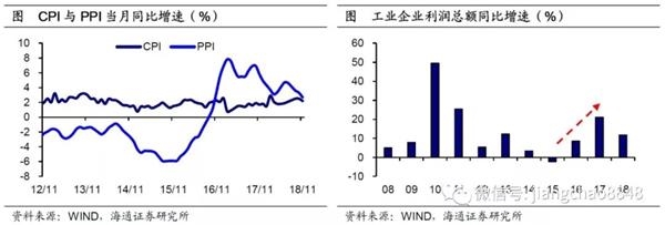 去产能推高工业品价格,利润改善提振企业家信心。GDP名义和实际增速在这一时期分化的原因何在?去产能导致的工业品价格上升是主要推手。PPI当月同比增速自16年9月由负转正以来一路上升,17年至18年10月均维持在3%以上的水平,而CPI增速在同期多数时间处于2%以下。PPI增速的上升带来了企业利润的改善,16年全年工业企业利润增速由15年的-2.3%大幅上升至8.5%,17年又进一步上行至21%,年均提高10个百分点以上,18年以来虽有回落,但11月累计同比增速仍在11.8%的高位。在企业利润回暖的情况下,企业家信心的走高自然也在情理之中。