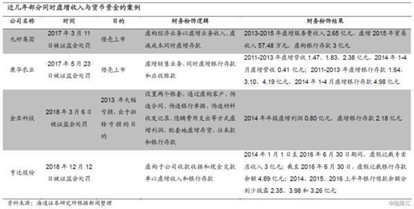 虚增利润的同时虚增货币资金。虚增货币资金的情形可能涉及财务造假。通常而言财务粉饰的目的多出于做大利润或资产,以支撑股价和获得资本市场青睐。虚增的净利润会反映在资产负债表中的“未分配利润”项下,根据会计等式“资产=负债+所有者权益”,所有者权益增加,相应的需要增加资产项目金额或是减少负债,而虚增货币资金则是一种典型的增加资产的手法。虚增的货币资金并非真实存在,尤其是出于“扭亏为盈”目的而进行财务粉饰的企业,因为本身产生现金流的能力存在问题,外部融资需求仍然较强,就可能出现存贷双高的现象。