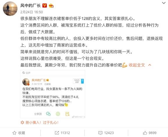 买裙子低于128的是“低价人群”?淘宝小二:背LV的也会买便宜衣服