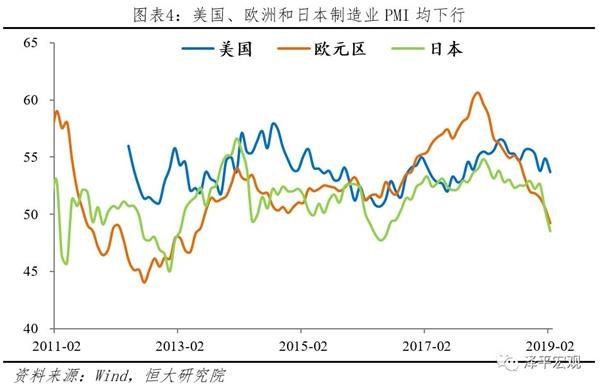 内需强于外需,且集中于非贸易部门。新出口订单指数45.2%,较上月回落1.7个百分点,创近十年新低,全球BDI指数今年以来暴跌近50%,出口形势依然严峻。一是由于前期抢出口及春节提前透支需求;二是世界经济见顶回落。2月美国制造业PMI为53.7%,较上月下滑1.2个百分点;欧元区和日本制造业PMI双双跌破荣枯线,分别为49.2%和48.5%,较上月下滑1.3和1.8个百分点。进口指数44.8%,较上月下滑2.3个百分点,连续8个月在50%以下。BDI指数今年以来暴跌近50%,国际贸易活跃程度趋弱。