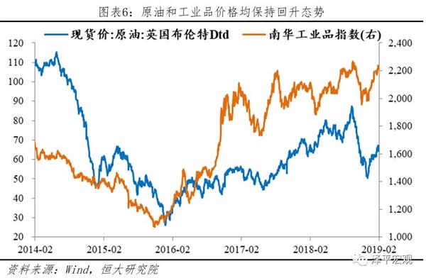 3、原油和工业品价格上涨带动价格指数回暖,通缩压力暂缓,但整体上2019年PPI低于去年