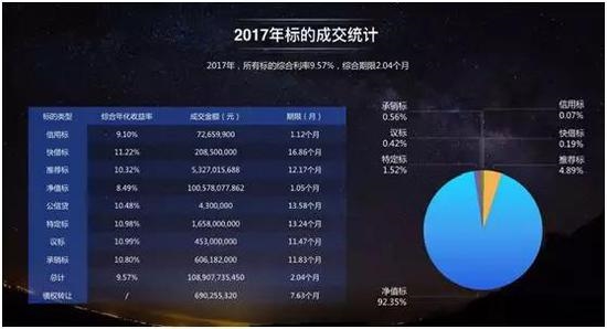 说完大标,我们再来说一下净值标的杠杆风险,目前红岭创投并没有披露净值标最新规模,但根据公司2017年度运营数据显示,净值标成交1005.78亿元,占2017年度借款标比例92.35%。
