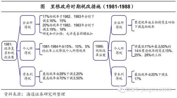 三轮减税:改善收入提振消费。回头看,美国居民消费扩张升级之路并非一帆风顺。每一次经济衰退,势必导致消费增速下滑,而每一次经济回升的背后,也都有消费增速反弹的贡献。减税则是历史上美国政府改善居民收入、提振消费,从而拉动经济的重要政策工具,也都起到了很好的效果,值得我们借鉴。