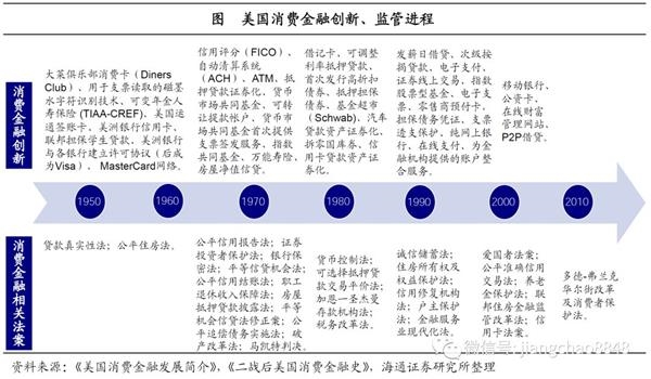 消费信贷三大支柱:减税、创新、监管。而得益于里根政府减税带来的收入增厚,美国消费金融产品的创新,以及不断完善的消费信贷法律体系,美国消费信贷也在80年代迎来爆发式增长。其中,消费金融产品的创新包括三个方面:一是广谱化、多样性的借贷模式,从抵押贷款到次级按揭贷款不一而足,互联网的发展也带来了新的支付方式;二是Visa、MasterCard两大银行卡组织的成立,以及信用卡的普及,令消费信贷更为便捷;三是70年代起逐步完善、较为全面的征信体系,以Experian、TransUnion和Equifax为代表,目前三大征信机构已覆盖85%左右的美国公民。