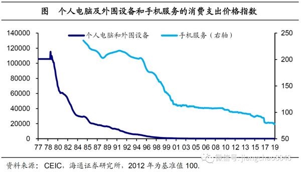 技术进步降低成本,“昔日贵族”进千家万户。技术进步带来部分商品价格的降低,配合收入水平的提高,使得旧日的昂贵消费品能够进入千家万户,这对美国消费的影响同样不容忽视,特别是其在很大程度上改变了美国的消费结构。根据美国个人消费支出价格指数来看,个人电脑及其外围设备、手机服务在80年左右的价格约是现在的几百倍,正是由于技术进步使得消费电子产品的价格持续走低,才使得电脑和手机普及到了千家万户,并带动了相关商品和服务消费的大幅增长。