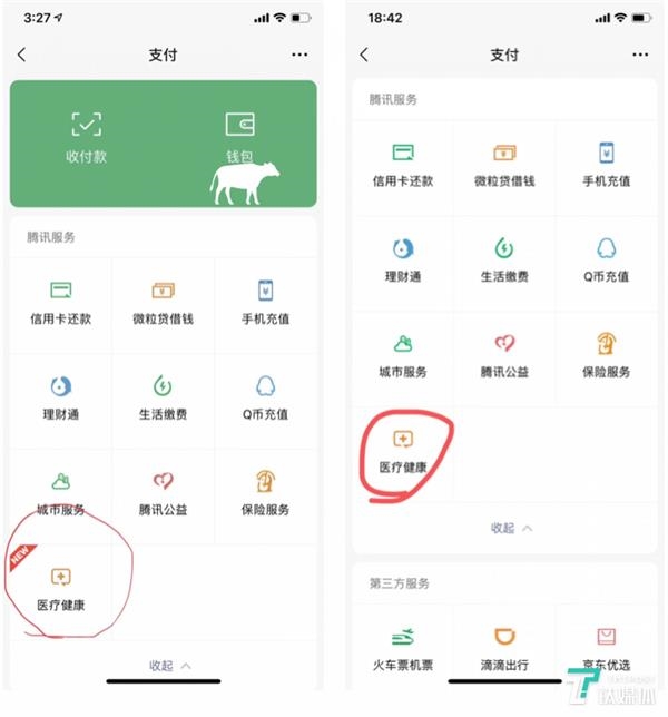 钛媒体独家获悉,“微信支付”页面将增加“医疗健康”入口,隶属于腾讯服务版块(非第三方服务),目前该入口仍处于灰度测试阶段。据腾讯方面透露,自3月18日起,部分深圳微信用户可以看到该入口,未来将逐步向其他城市微信用户开放。