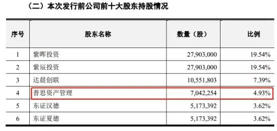 4月3日披露的广东紫晶信息存储技术股份有限公司,王思聪旗下普思资产管理以持股4.93%位列第四。2017年6月,紫晶存储向达晨创投、普思资本、基石资本等定向增发1.64亿人民币,其中普思资本贡献5000万元。这已经是王思聪押中的第二家科创板受理企业。