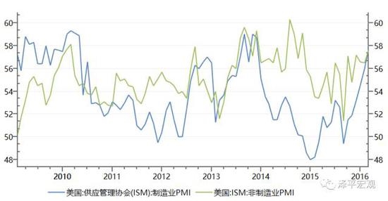 1、各种证据表明,2016年8月份(而不是特朗普逆袭的11月9日)以来,美国经济周期正从复苏走向过热。从2016年8月到2017年2月,美国ISM制造业PMI指数从49.4大幅回升至57.7,非制造业PMI指数从51.4回升到57.6,消费者信心指数从89.8回升到96.3,失业率从4.9%降到4.8%。美国通胀PCE从1.0%大幅回升至1.9%,接近2%的通胀目标,其中能源价格涨幅远超过食品价格。受美国经济和通胀加速影响,3月份美联储加息概率从20%大幅上调到近期的90%多,耶伦表态3月份加息可能是恰当的。推动美国经济周期从复苏走向过热的主要因素有:补库周期,周期加速器,以及特朗普基建减税刺激预期等。