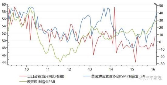 2、受美欧经济加速带动,中国出口显著回升。2016年下半年以来世界经济在改善,欧美的PMI指数都在创新高,补库存和特朗普景气,中国出口持续回升,从2016年的负增长回升到2017年1月出口增长7.9%,大幅超市场预期,我们剔除季节因素也是非常亮眼。2月PMI新出口订单回升至50.8,比上月加快0.5个百分点。除了外需的改善之外,2015-2016年人民币贬值了14%。