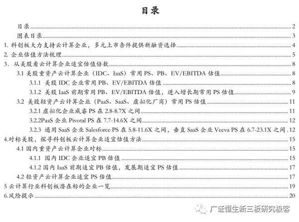 科创板重点推荐包括云计算在内的新一代信息技术领域,允许尚未盈利的企业上市的多元包容的上市条件也为初具规模的云计算公司提供了新的融资选择。另外允许亏损企业上市,传统主流的PE估值法便不再普遍适宜,估值成了一大难点,同时科创板采用市场询价机制,对于机构而言如何准确估值便成了重中之重。