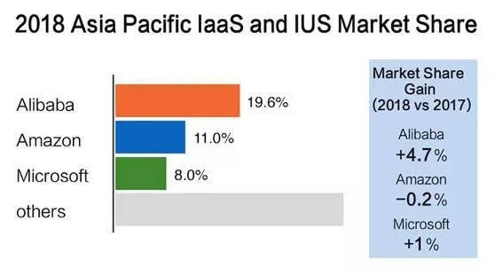 相对而言,中国云计算市场本身具有红利,Synergy Research Group数据显示,全球云计算市场以每年50%的速度增长,而中国市场则以每年超过70%的速度增长,2018年中国市场的云基础服务已占据亚太地区总市场的三分之一左右,在阿里巴巴自身技术累计和事件的基础上,阿里云作为中国市场的老大,享受到了中国云计算市场的红利。