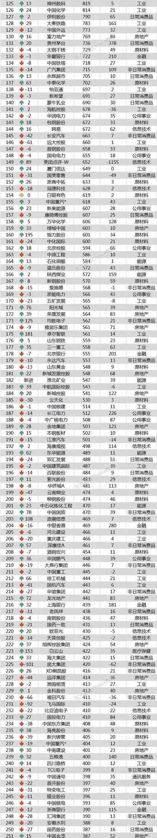 数据显示,位列榜单前十位的公司,排名基本较去年没有变化,仅个别公司发生小幅变动:工商银行从第7位上升1位至第6位;中国中铁排名上升1位,来到第7名;此外,中国移动名次下降2位至第8位,而建设银行上升1位,成功跻身前十。