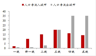 我们对已经公布数据的169个城市人口数据进行统计,按城市分类,2018人口主要向新一线城市集中,已有数据11个新一线城市中,人口净流入总规模达150万人。而四五线城市中,有70%城市出现人口净流出。而一线城市人口流入不明显,主要是北京流出太多,与新一线城市有较大差距。