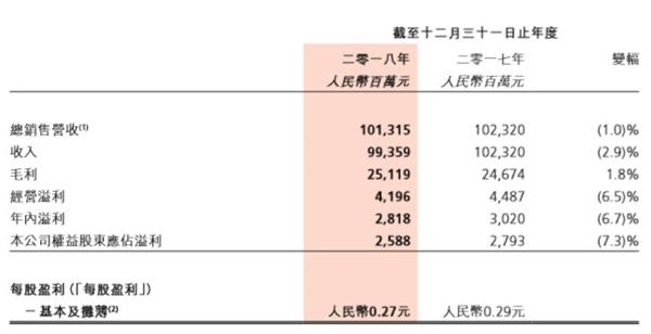 高鑫零售2018年报显示,报告期内公司总营收1013亿元,同比下滑1%;同店销售增长率较2017年0.26%的跌幅,2018年已扩大至1.72%;利润总额为41亿元,同比下滑6.5%。