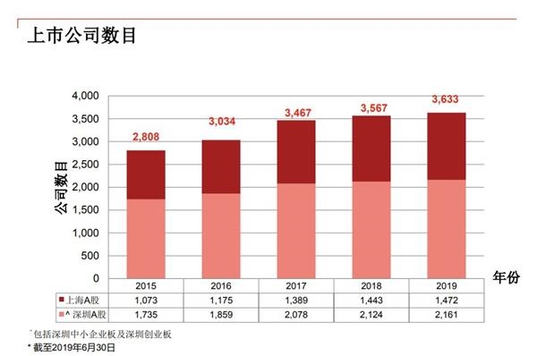 根据普华永道发布的数据,截至2019年6月30日,中国A股上市公司共计有3633家。其中上海有1472家,深圳有2161家。