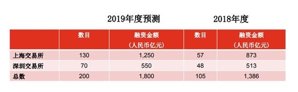 普华永道中国内地及香港审计服务部市场主管合伙人王崧表示:“今年IPO市场最大的看点就是科创板,因为在发行硬条件准入方面有所放宽,增加了科创板的包容性,所以对中介机构的责任将进一步强化,以此保护投资者的利益。科创板的推出和注册制的试行,将推动2019年下半年A股IPO市场活跃。预计2019全年A股多层级资本市场获得IPO企业数量将有可能超过200家,全年融资规模超过1800亿元人民币。”