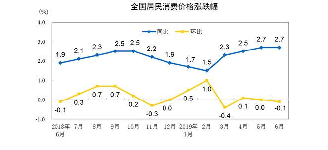 6月CPI同比上涨2.7% 涨幅连续四个月处于“2时代”