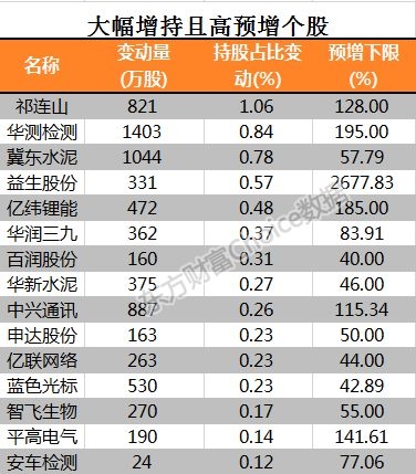 北向资金增仓高预增个股
