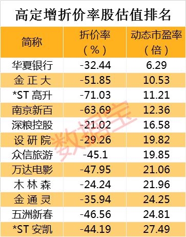 在折价率20%以上的40家公司中,有12家最新市盈率在30倍以下,南京新百、金正大等7家更是低于20倍。
