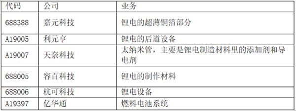 目前新能源行业里有科创板拟上市公司,分别是嘉元科技、利元亨、天奈科技、容百科技、杭可科技、亿华通。其中,亿华通为燃料电池系统企业,其他都是锂电池新能源相关公司,既包括锂电设备,也包括锂电池原材料相关产业。这六家都是与新能源汽车相关的公司,目前已经提交材料的140余家科创板公司中尚无与风电、光伏和核电等行业相关的公司。
