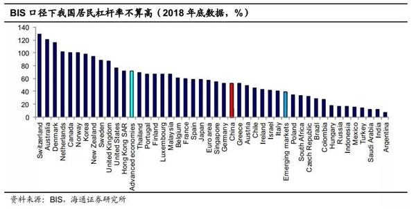 BIS口径下我国居民杠杆率绝对水平不算高。根据BIS计算的居民杠杆率数据,从绝对值看,截至18年底我国的居民杠杆率为52.6%,低于大多数发达国家,但要高于发展中国家平均水平。