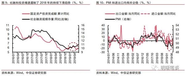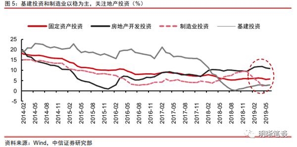上半年经济有韧性,政策保持定力。去年的宽松政策并非无效,固定资产投资从去年四季度起企稳回暖;而随着非标融资压力有所缓释、银行信贷投放力度加大,社融增速也扭转了去年的下行趋势,投融资端并没有大幅恶化。而从制造业景气度看,PMI虽然仍然处于荣枯线以下,但2019年以来已经出现企稳迹象,预计年内制造业将以稳为主。上半年投融资端触底回升、经济基本面企稳迹象是货币政策回归中性、保持定力的“底气”,立马降息的必要性不强。