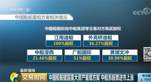 14日深夜,中国船舶发布了调整重大资产重组方案的公告,调整后方案与原方案相比,中国船舶减少了广船国际32.54%股权,公司股票于15日起复牌。