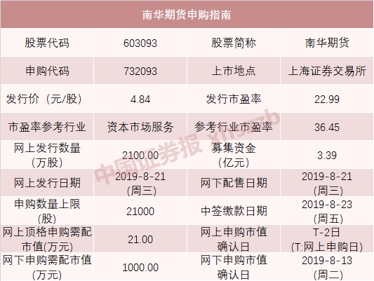 本周沪深两市只有1只新股申购,就是今天(8月21日)沪市主板的南华期货。作为A股“正宗”期货第一股,南华期货上市后若能达到7个涨停板,每签获利约为0.75万元。