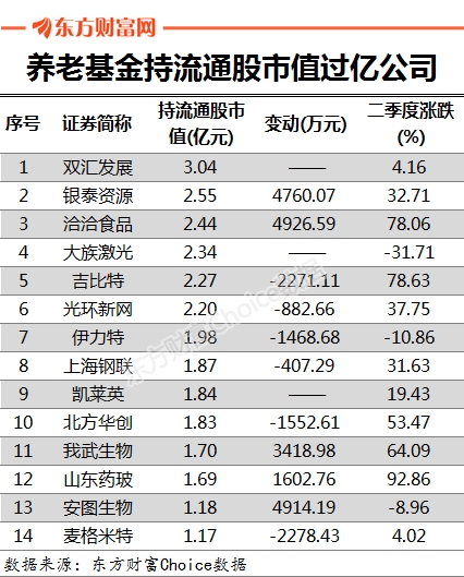 养老金持14股流通市值过亿